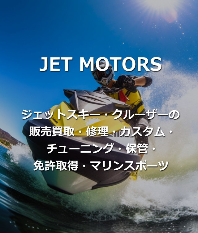 ジェットスキー全メーカーの所有経験と免許講習・修理・チューニングの実績がありますので各ジェットスキーの特有のクセや壊れやすい箇所、注意箇所・カスタムも網羅しておりますのでお悩みの方にしっかりとアドバイス致します。